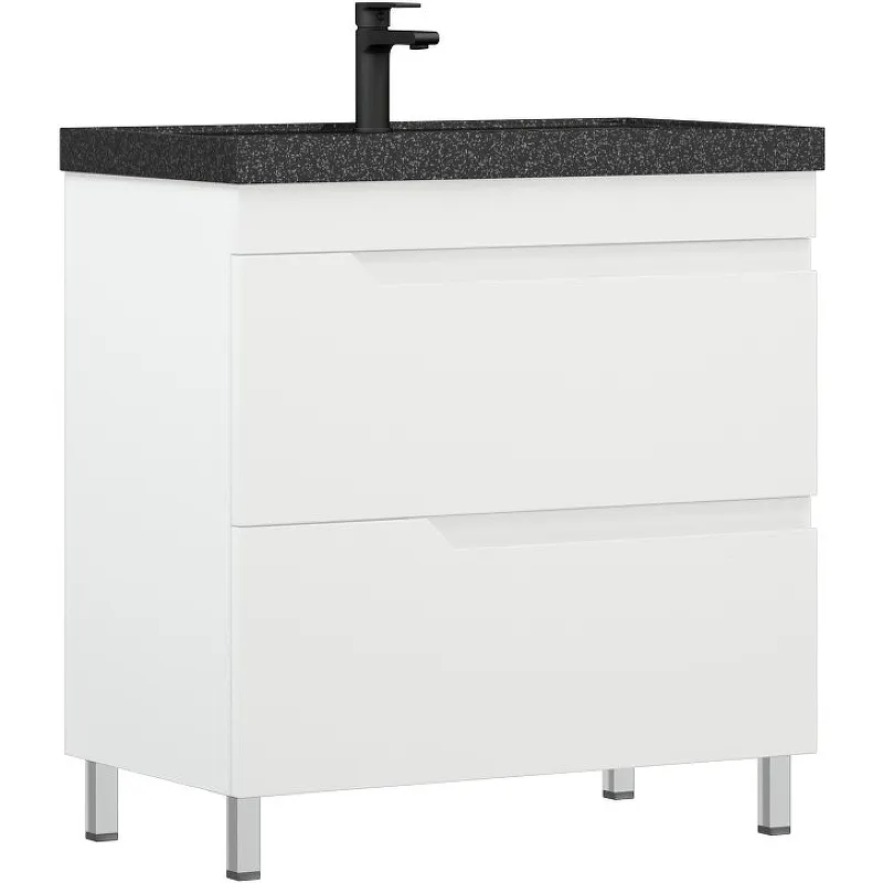 - Лёгкий монтаж: Напольная установка и комплект ножек в 100 мм позволяют быстро установить тумбу.