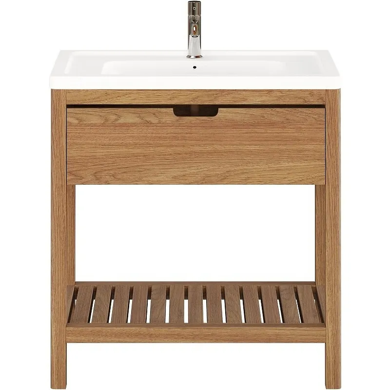 - Практичная система хранения: Мебель для ванной с ящиками и открытыми полками обеспечит удобное хранение всех необходимых принадлежностей.