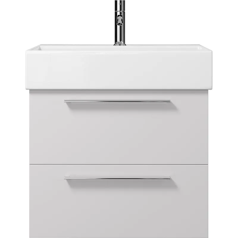 Тумба под раковину Creto Tivoli 60 8-1376W подвесная Белая — идеальное решение для современного интерьера ванной комнаты. Благодаря подвесному монтажу и универсальной ориентации, она отлично впишется в любое пространство. Глянцевая белая поверхность и хромированная фурнитура придают элегантность и стиль, а система хранения с двумя выдвижными ящиками обеспечивает удобство использования.