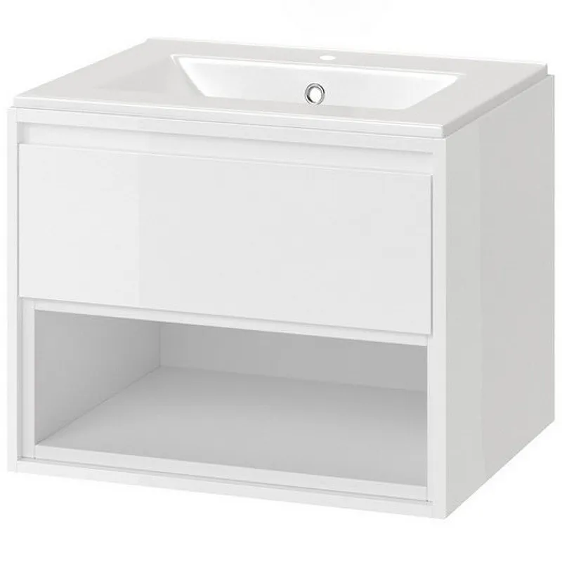 Подвесная тумба под раковину Excellent Tuto 60 MLEX.0101.600.WHWH. Предназначена для использования в ванных комнатах с повышенной влажностью.Технические данные: Цвет: белый. Фасад и корпус: ЛДСП и МДФ. Корпус и фасад: окрашены Eco лаками устойчивыми к царапинам, температуре и излучению. Система хранения: 1 выдвижной ящик с доводчиком, 1 полочка. Ящики оснащены бесшумной системой выдвижения Soft Close, которая замедляет закрытие. В шкафах используются навесы итальянской фирмы Camar, которые соответствуют допустимой нагрузке до 600 кг. Размеры (ШхДхВ): 60x45,7x500 см. Монтаж: на стену. В комплекте поставки: тумба под раковину, комплект креплений.