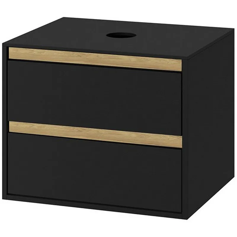 Подвесная тумба под раковину Excellent Tuto 60 MLEX.0104.600.BKBL. Предназначена для использования в ванных комнатах с повышенной влажностью.Технические данные: Цвет: черный матовый, дуб. Фасад и корпус: ЛДСП и МДФ. Отделения: 2 выдвижных ящика с системой Soft Close. Размеры (ШхДхВ): 60x49,4x45,7 см. Монтаж: подвесной, крепление к стене. В комплекте поставки: тумба под раковину, комплект креплений.