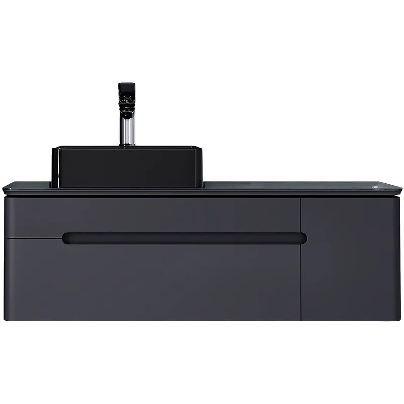 Тумба под раковину Jorno Shine 120 Shi.01.120/P/A подвесная с подсветкой.Характеристики: Цвет корпуса и фасада: антрацит. Материал корпуса и фасада: МДФ. Покрытие корпуса и фасада: пленка ПВХ. Материал столешницы: стекло Lacobel. Тип подсветки: светодиодная. Тип выключателя: сенсорный. Габариты корпуса тумбы (ШхВхГ): 1204х394х496 мм. Монтаж: подвесной. Система хранения: 2 выдвижных ящика, распашная дверца. Оснащение: система плавного закрывания. С отверстием под смеситель. В комплекте поставки: Тумба под раковину. Столешница.