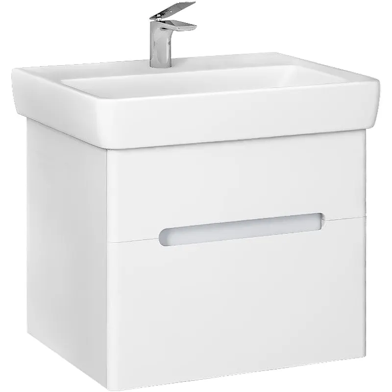 Тумба под раковину Laparet Accord 60 Acc.01.60/P/W подвесная.Характеристики: Цвет: белый. Материал фасада: МДФ. Покрытие фасада: глянцевая пленка. Материал корпуса: ЛДСП. Покрытие корпуса: ламинат. Поверхность корпуса: глянцевая. Монтаж: подвесной. Размеры корпуса тумбы (ШхГхВ): 53,6x38,8x52,7 см. Система хранения: два выдвижных ящика на доводчиках. Верхний ящик имеет вырез под сифон. Механизм доводчика с системой плавного и бесшумного закрывания. В комплекте поставки: Тумба под раковину. Комплект креплений. Инструкция.