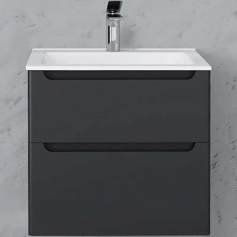 Тумба под раковину Laparet Sinergia 60 Sin.01.60/P/A подвесная.Характеристики: Цвет: антрацит. Материал фасада: МДФ. Покрытие фасада: пленка матовая (Soft Touch). Материал корпуса: ЛДСП. Покрытие корпуса: ламинат. Поверхность корпуса: матовая (Soft Touch). Монтаж: подвесной. Размеры корпуса тумбы (ШхГхВ): 59x46,8x56 см. Система хранения: два выдвижных ящика. Органайзер для внутреннего пространства. Механизм доводчика с системой плавного и бесшумного закрывания. В комплекте поставки: Тумба под раковину. Комплект креплений. Инструкция.