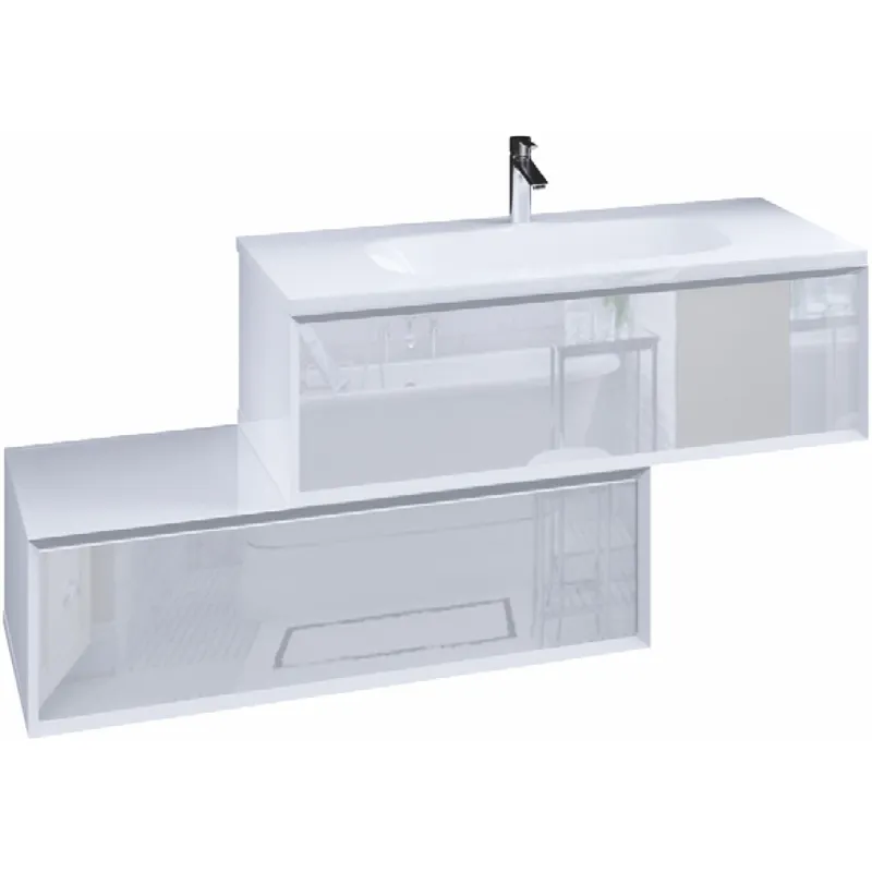 Тумба под раковину от Marka One — это идеальное решение для современных ванных комнат. Подвесная конструкция обеспечивает стиль и функциональность, идеально вписываясь в современные интерьеры. Белая тумба из МДФ с глянцевым покрытием дополняет раковину из искусственного камня, создавая гармоничный и практичный ансамбль.