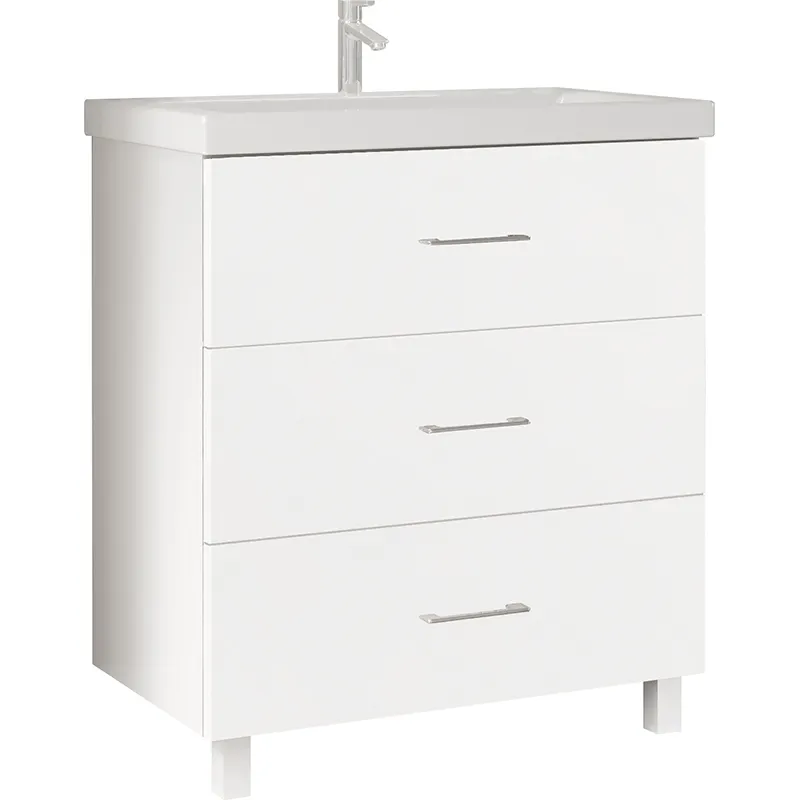 - Функциональность: Тумба оснащена тремя ящиками, что обеспечивает удобную систему хранения в ванной.