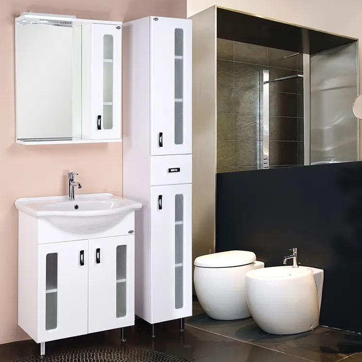 - Удобство хранения: Категория тумбы с раковиной имеет две распашные дверцы с вставками из стекла, обеспечивающие легкий доступ к системе хранения.