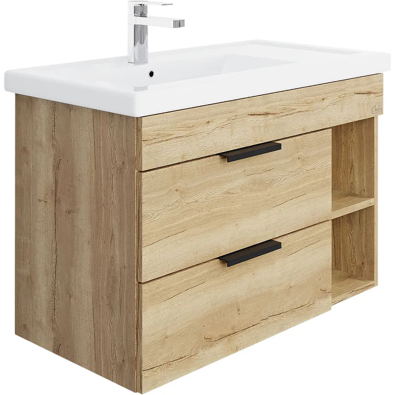 Подвесная тумба под раковину Onika Легран 80.13 108047 — идеальное решение для создания современного интерьера в вашей ванной комнате. Благодаря стильному дизайну и фактурной поверхности, она станет центральным элементом вашего интерьера. Тумба выполнена из качественного ЛДСП с ламинированным покрытием в цвете "дуб галифакс", что придаёт ей особую изысканность и долговечность. Удобная система хранения с двумя выдвижными ящиками и открытыми полками позволит вам рационально использовать пространство.