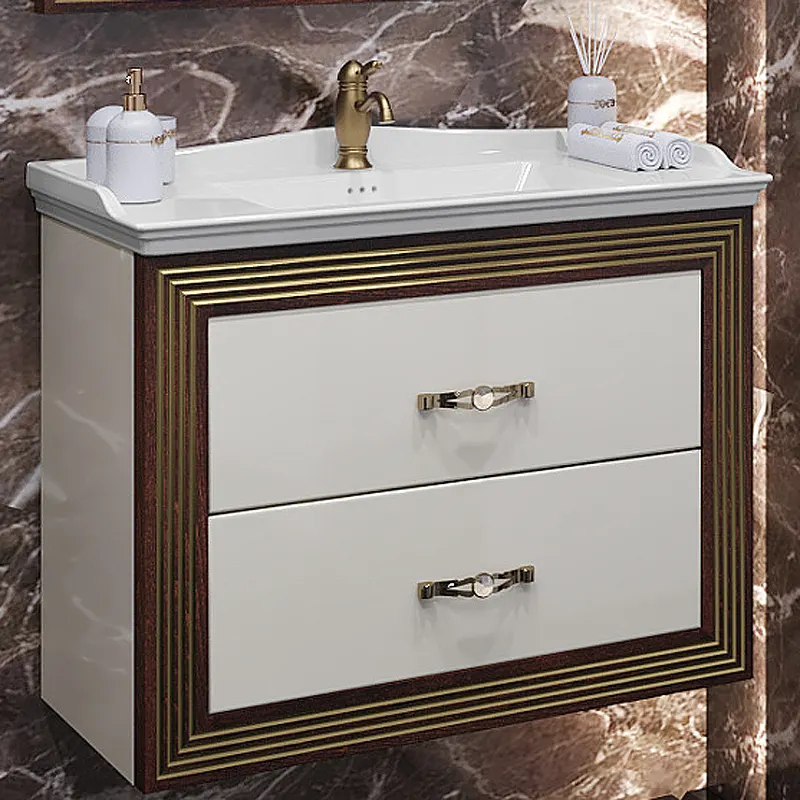 - Эстетичный дизайн: Тумба под раковину выполнена в уникальном цвете слоновая кость с золотой патиной, что добавляет интерьеру ванной комнаты роскоши.