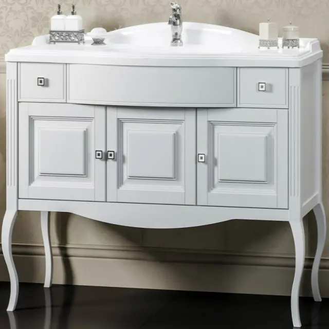 - Классический стиль тумбы с раковиной: изогнутые формы и резные узоры создают атмосферу изысканности.
