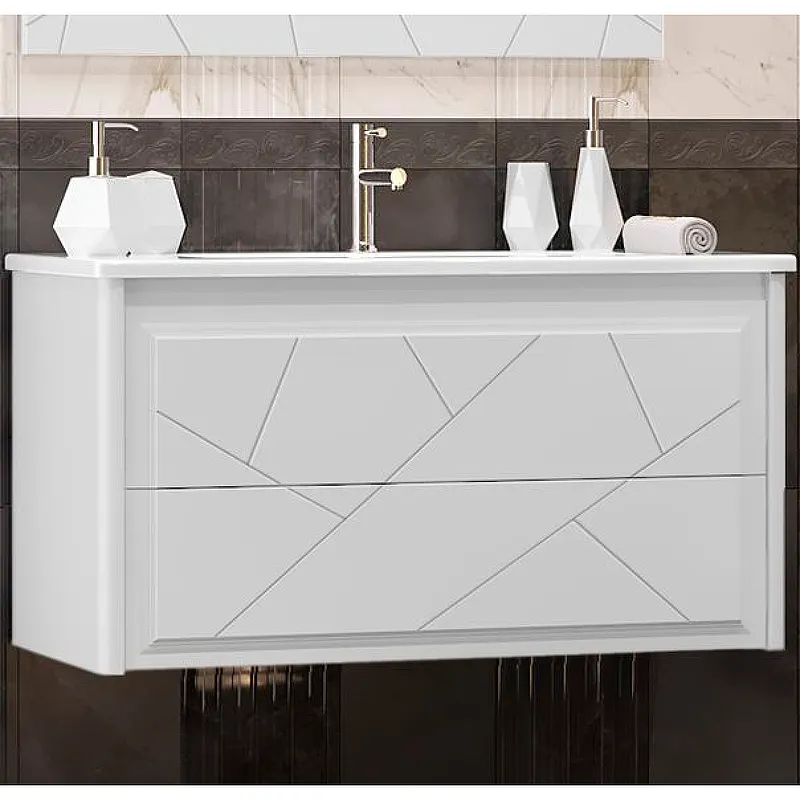 - Качественные материалы: Тумба из МДФ с эмалевым матовым покрытием обеспечивает долговечность и стойкость к влаге.