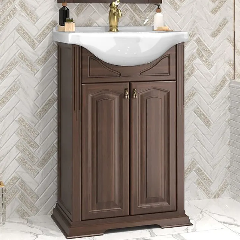 - Классический дизайн для ванной комнаты: Прямоугольная форма и антикварный ореховый цвет создают утонченную атмосферу.