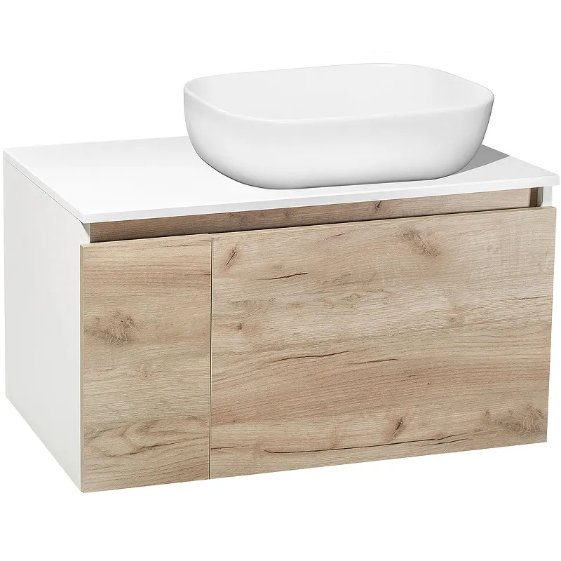 Тумба под раковину Runo Бари 80 00-00001375 подвесная Крафт дуб Белая