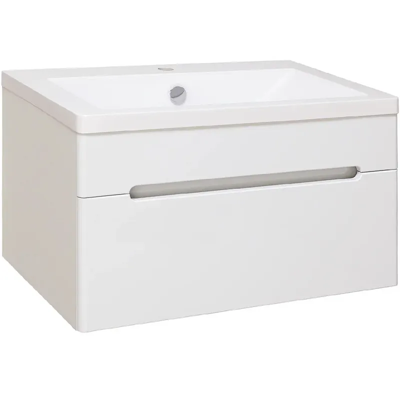Тумба под раковину Runo Парма 75 00000001140 подвесная — идеальное решение для вашей ванной комнаты. Изготовленная из МДФ с покрытием из пленки ПВХ, она обладает устойчивостью к влаге и коррозии, что обеспечивает долгий срок службы. Эта подвесная тумба под раковину станет стильным дополнением в современном стиле.