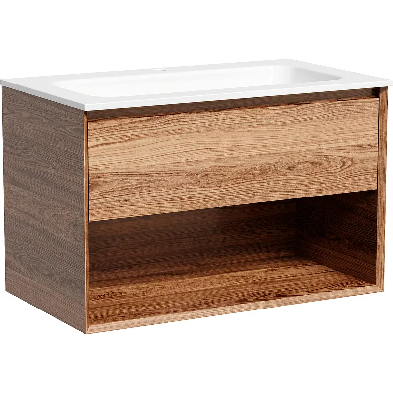 Тумба под раковину Sancos Marmi 1.0 80 MR1.080ECH подвесная.Характеристики: Цвет: дуб чарльстон. Материал корпуса и фасада: ЛДСП. Покрытие корпуса и фасада: ламинат/матовая. Габариты корпуса тумбы (ШхВхГ): 790х520х445 мм. Система хранения: один выдвижной ящик, открытая полка. Оснащение: механизм доводчика скрытого монтажа с системой Soft close (плавного закрывания). Фрезерованная ручка по всей длине фасада. Монтаж: подвесной. В комплекте поставки: Тумба под раковину. Комплект доводчиков. Комплект креплений. Инструкция.