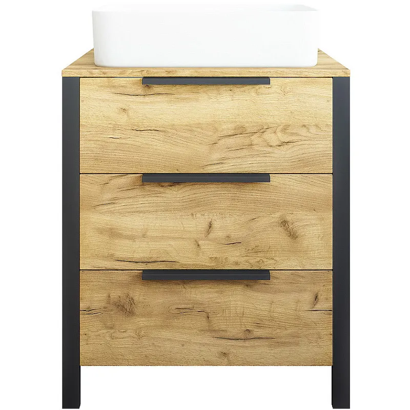 Тумба под раковину Sanflor Гард 70/2 С22582 Дуб крафт золотой Черный