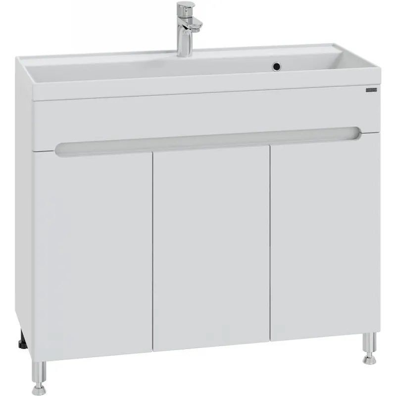 Тумба под раковину СанТа Лондон 100 224019 Белая — идеальный выбор для вашей ванной комнаты. Данная тумба с прямоугольной формой тумбы и раковиной из искусственного камня (литьевого мрамора) станет функциональным и стильным элементом интерьера. Напольная тумба оснащена системой хранения с тремя распашными дверцами, что обеспечивает удобство в хранении вещей.