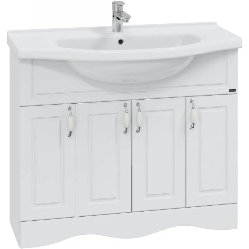 Тумба под раковину СанТа Верона 100 700114 Белая — идеальное решение для вашей ванной комнаты. Эта напольная тумба, выполненная в классическом стиле, станет неотъемлемой частью интерьера. Изготовленная из влагостойкого ЛДСП и МДФ, она обеспечит долговечность и устойчивость к влаге, что особенно важно в условиях ванной комнаты.