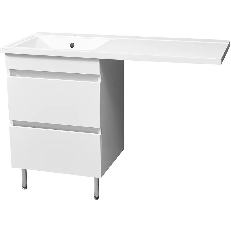 - Функциональность: Тумба оборудована местом для стиральной машины, что экономит пространство.