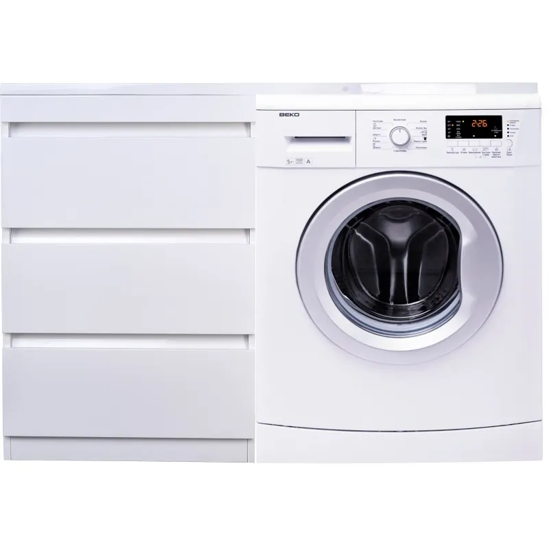 - Универсальность: Возможность установки стиральной машины под тумбу экономит пространство.