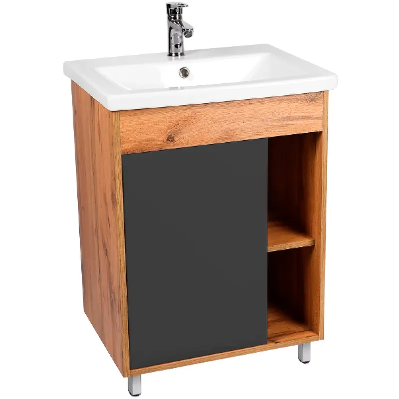 Тумба под раковину VIANT Бостон 60 VBOS60COG-T1ST Графит матовый Дуб Вотан