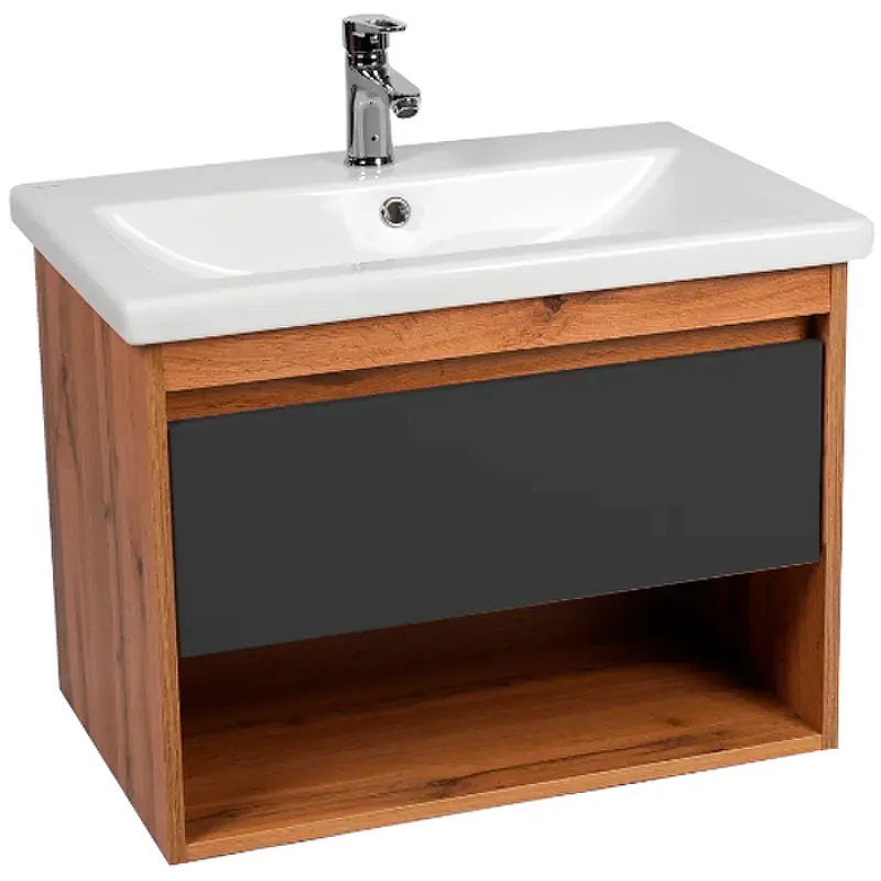 Тумба под раковину VIANT Бостон 60 VBOS60COG-T1YP подвесная Графит матовый Дуб Вотан
