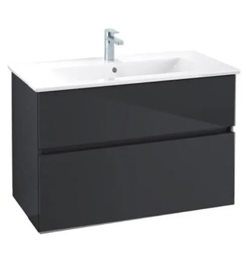 Тумба под раковину, Villeroy&Boch, Verity Line, ширина, мм-755, глубина, мм-482, высота, мм-618, тип установки-подвесной, раковина-есть Venticello, шгв раковины 800*500*165, монтаж раковины-встраиваемый, вырез под смеситель-1 сквозной, 2 промаркированных, с переливом, материал раковины-керамика, цвет раковины-альпийский белый, ящики-2, крепления в комплекте, материал корпуса-МДФ плёнка, материал фасада-МДФ плёнка, цвет-черный матовый арт-41048L01/B66300VC Set