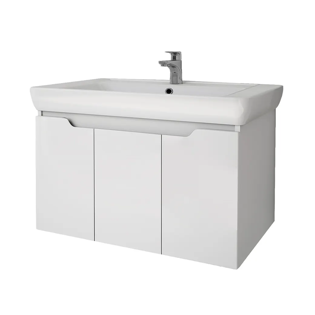 Тумба Q (D), 80 см, подвесная, 3 дверцы, белый глянец