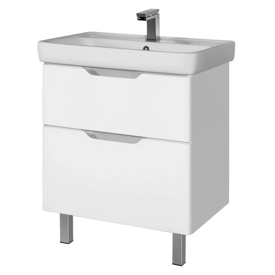 Тумба Q PLUS, 70 см, подвесная/напольная, 2 ящика, с опорами, белый глянец