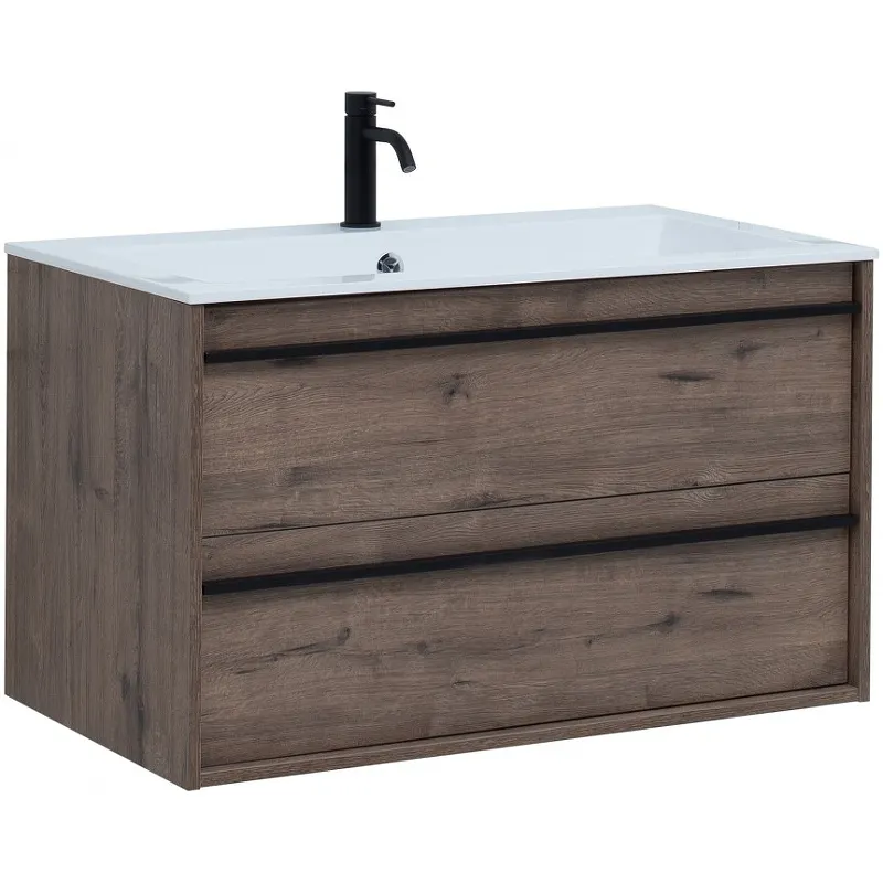 Тумба с раковиной Aquanet Lino 90 271950 подвесная Дуб Веллингтон
