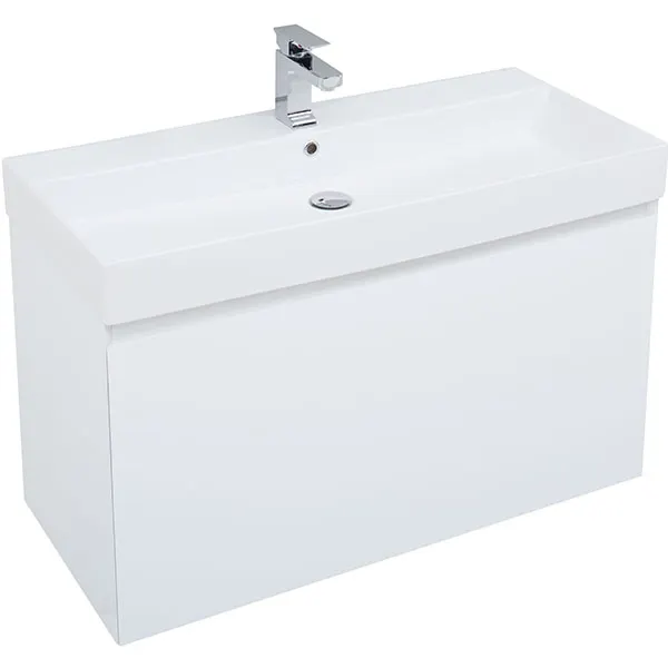 Тумба с раковиной Aquanet Йорк 100 212594 подвесная Белый глянец