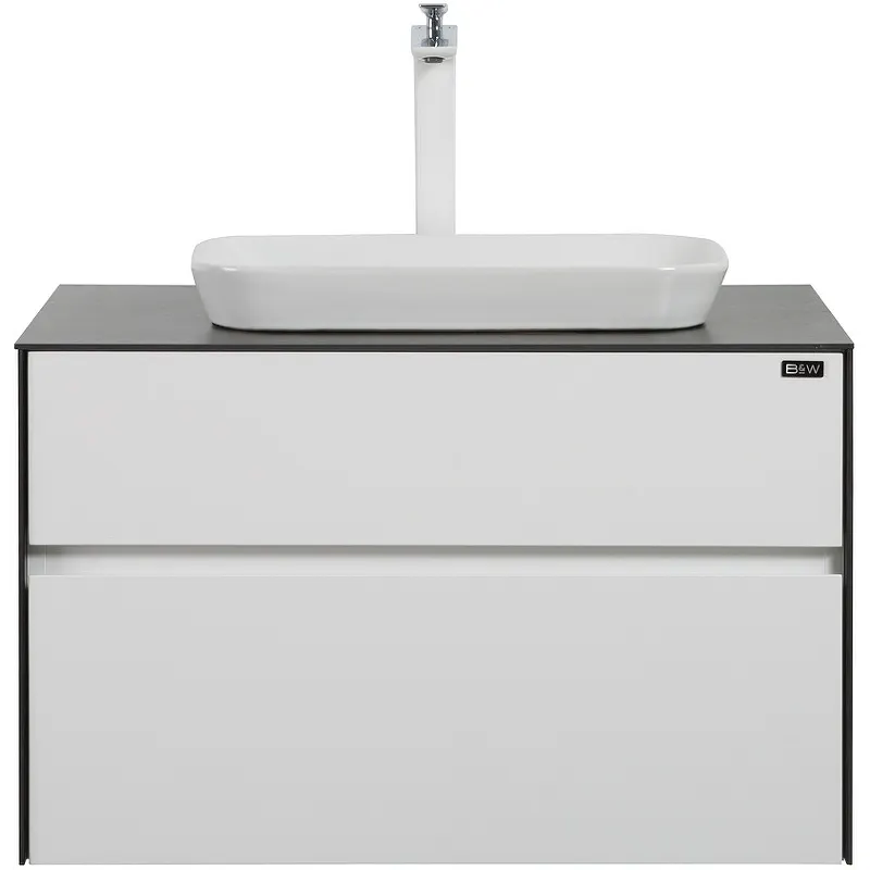Тумба с раковиной Black&White Universe U907.800-1 80 907U800-1 подвесная.Характеристики:Тумба: Цвет фасада: White matt 7001 (белый матовый). Цвет столешницы и боковин: Lauren gold 8891 (золотой). Материал: влагостойкая плита МДФ. Покрытие: матовая краска. Материал столешницы и боковин: утонченный гладкий керамогранит. Отверстия под смеситель: 1. Габариты корпуса тумбы (ШхВхД): 800х506х525 мм. Система хранения: два выдвижных ящика. Оснащения: механизм доводчика Blum. Ориентация: универсальная. Монтаж: подвесной. Раковина: Цвет: белый. Материал: санитарный фарфор. Размеры (ШхВхД): 530х170х335 мм. Белый донный клапан push-open. Монтаж: накладной. В комплекте поставки: Тумба под раковину. Раковина.