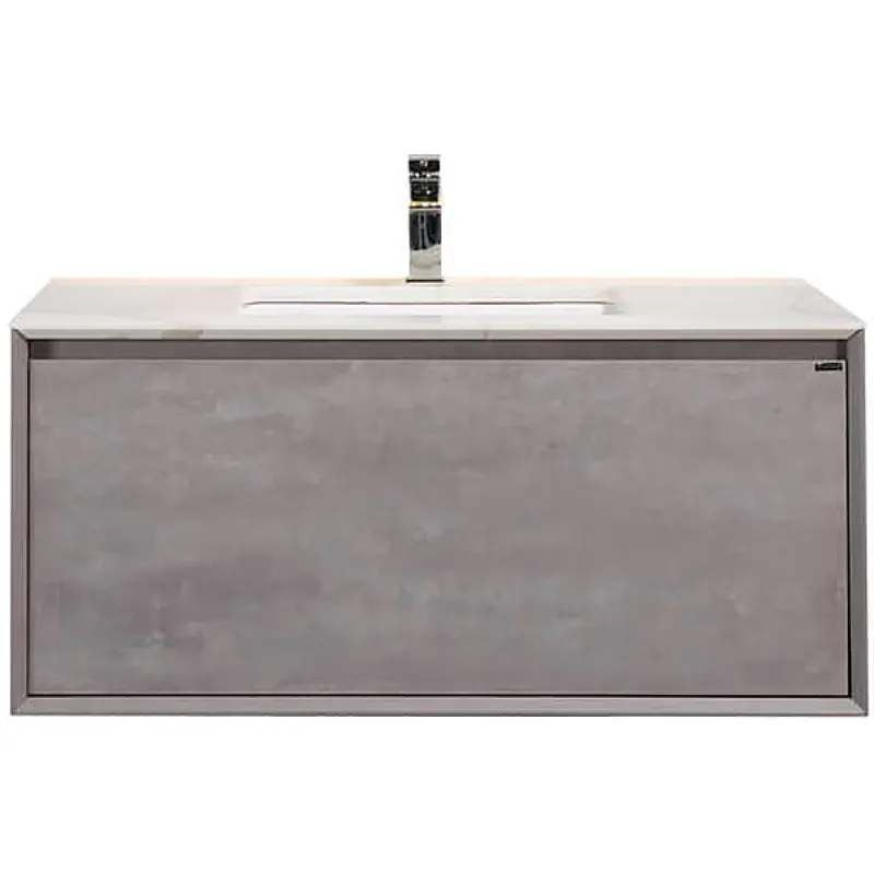 Тумба с раковиной Black&White Universe U909.1000 100 909U1000 подвесная.Характеристики:Тумба: Цвет фасада: G.ash 6562 (пепельный). Цвет столешницы: Fishbelly white 8891 (белый мрамор). Материал: MFC. Покрытие: меламиновое. Материал столешницы: искусственный мрамор. Отверстия под смеситель: 1. Габариты корпуса тумбы (ШхВхД): 994х450х582 мм. Система хранения: выдвижной ящик. Оснащения: механизм доводчика Hopper. Ориентация: универсальная. Монтаж: подвесной. Раковина: Цвет: белый. Материал: санитарный фарфор. Размеры (ШхВхД): 590х205х405 мм. Хромированный донный клапан push-open. Монтаж: встраиваемый снизу. В комплекте поставки: Тумба под раковину. Столешница. Раковина.