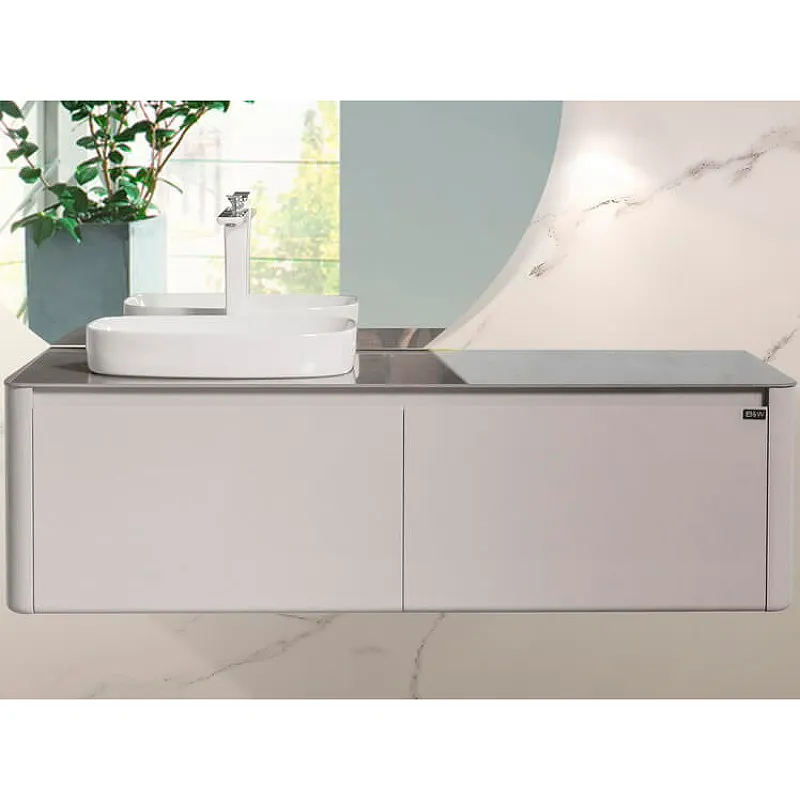Тумба с раковиной Black&White Universe U915.1400L 140 L 9151400 подвесная.Характеристики:Тумба: Цвет фасада и корпуса: Glossy light grey 7838 (серый глянцевый). Материал фасада и корпуса: влагостойкая плита МДФ. Покрытие фасада и корпуса: глянцевая краска. Габариты корпуса тумбы (ШхВхД): 1394х450х518 мм. Система хранения: два выдвижных ящика. Оснащения: механизм доводчика Blum Slim. Ориентация: левосторонняя. Монтаж: подвесной. Столешница: Цвет столешницы: Armani ash glossy 8885 (пепельно-глянцевый). Материал столешниц: керамогранит. Отверстия под смеситель: 1. Габариты корпуса тумбы (ШхВхД): 1400х8х550 мм. Монтаж: на тумбу. Раковина: Цвет: белый. Материал: санитарный фарфор. Размеры (ШхВхД): 500х140х380 мм. Хромированный донный клапан push-open. Монтаж: накладной. В комплекте поставки: Тумба под раковину. Столешница. Раковина.