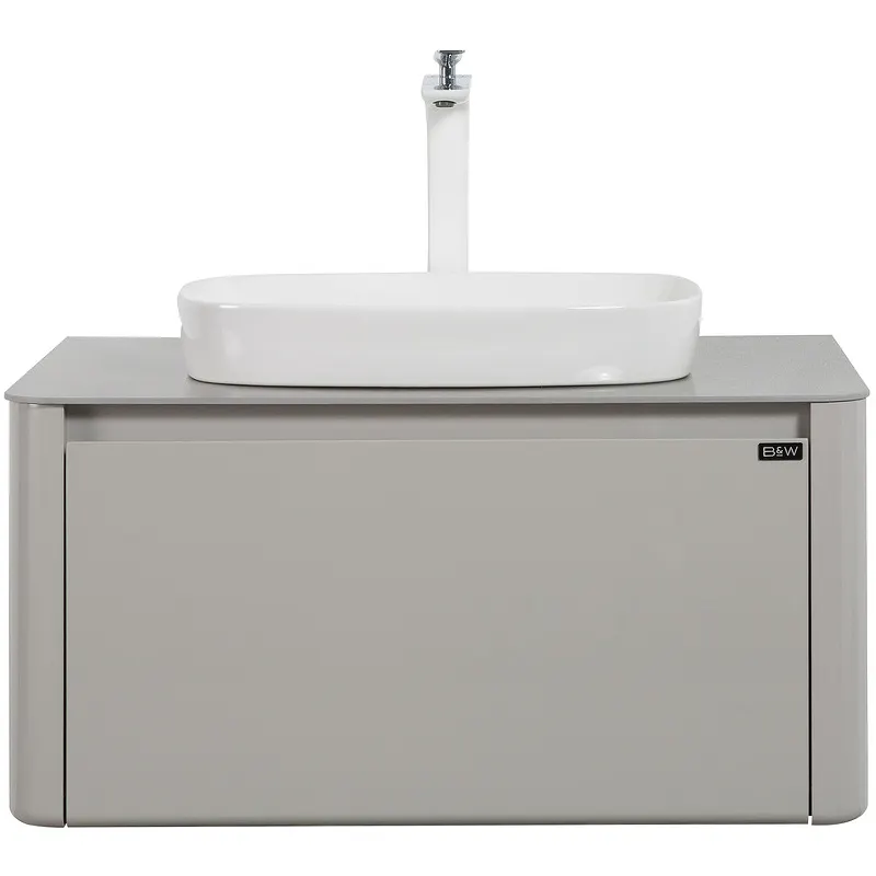 Тумба с раковиной Black&White Universe U915.800 80 915800 подвесная.Характеристики:Тумба: Цвет фасада и корпуса: Glossy light grey 7838 (серый глянцевый). Материал фасада и корпуса: влагостойкая плита МДФ. Покрытие фасада и корпуса: глянцевая краска. Габариты корпуса тумбы (ШхВхД): 792х400х544 мм. Система хранения: один выдвижной ящик. Оснащения: механизм доводчика Blum Slim. Ориентация: универсальная. Монтаж: подвесной. Столешница: Цвет столешницы: Armani ash glossy 8885 (пепельно-глянцевый). Материал столешниц: керамогранит. Отверстия под смеситель: 1. Габариты корпуса тумбы (ШхВхД): 800х8х550 мм. Монтаж: на тумбу. Раковина: Цвет: белый. Материал: санитарный фарфор. Размеры (ШхВхД): 500х140х380 мм. Хромированный донный клапан push-open. Монтаж: накладной. В комплекте поставки: Тумба под раковину. Столешница. Раковина.