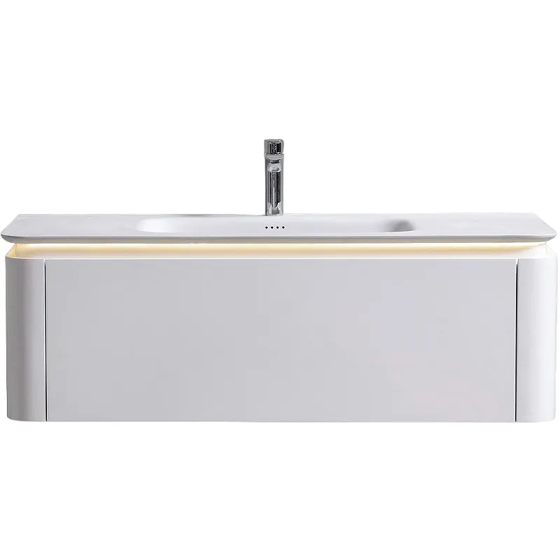 Тумба с раковиной Black&White Universe U925.1200 120 9251200 подвесная с подсветкой.Характеристики:Тумба под раковину: Цвет: Milk white (матовый молочный белый). Материал тумбы: PW (влагостойкий 9-и слойный фанерный лист). Габариты корпуса тумбы (ШхВхД): 1190х355х515 мм. LED подсветка столешницы по периметру, датчик движения. Ориентация: универсальная. Система хранения: 1 выдвижной ящик. Оснащение: механизм доводчика UniHopper. Монтаж: подвесной. Раковина: Цвет: белый. Материал: Corian (искусственный камень). Размеры (ШхВхГ): 1200х30х520 мм. Отверстия под смеситель: 1. Перелив. Монтаж: на тумбу. В комплекте поставки: Тумба под раковину. Раковина. Донный клапан push-open хром.
