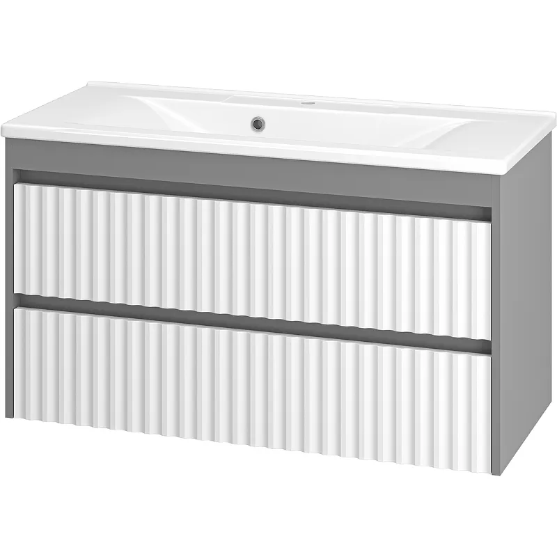 Тумба с раковиной Brevita Balaton 100 УТ000012298 подвесная Белая матовая Серая матовая