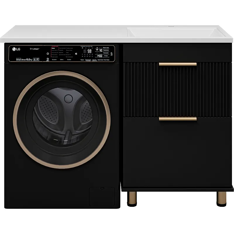 - Универсальность: Напольная установка позволяет разместить тумбу под раковину над стиральной машиной, что экономит пространство.