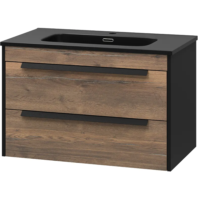 Тумба с раковиной Brevita Monsour 80 УТ000015278 подвесная Дуб Галифакс олово Черный кварц