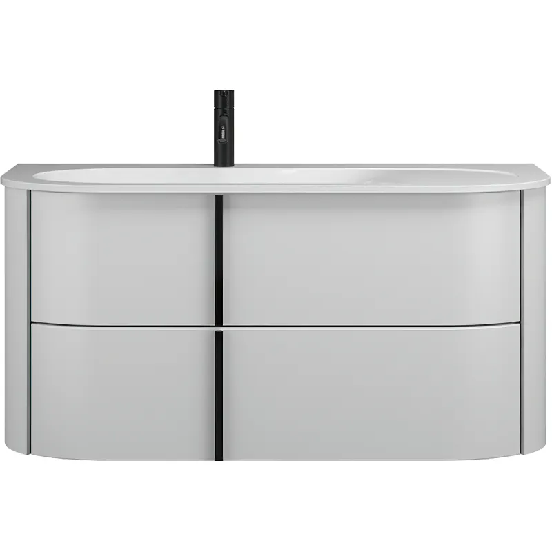 Тумба с раковиной Burgbad Lavo 2.0 100 SFZS102LG0227F5048C0037*1 подвесная.Характеристики: Цвет: белый глянцевый. Цвет ручек: черный. Материал: МДФ. Габариты (ШхВхД): 1020 x 492 x 495 мм. Установка: подвесная. Система хранения: 2 ящика с механизмом плавного закрытия. Цвет раковины: белый. Материал раковины: искусственный камень. Отверстие под смеситель: 1. Расположение раковины: слева. В комплекте поставки: Тумба. Раковина.