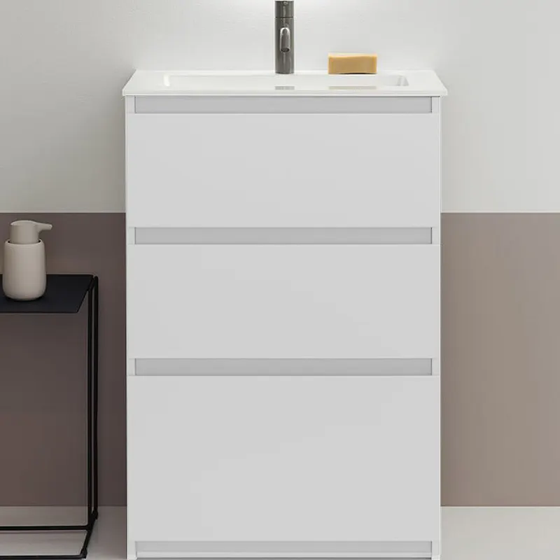 Тумба с раковиной Burgbad Lin20 60 SGHQ062F5351C0001*1.Характеристики: Цвет: белый матовый. Материал: МДФ. Габариты (ШхВхД): 620 x 902 x 365 мм. Установка: напольная. Система хранения: 3 выдвижных ящика. Цвет раковины: белый. Материал раковины: керамика. Форма: прямоугольная. Отверстие под смеситель: 1. В комплекте поставки: Тумба. Раковина. Сифон.