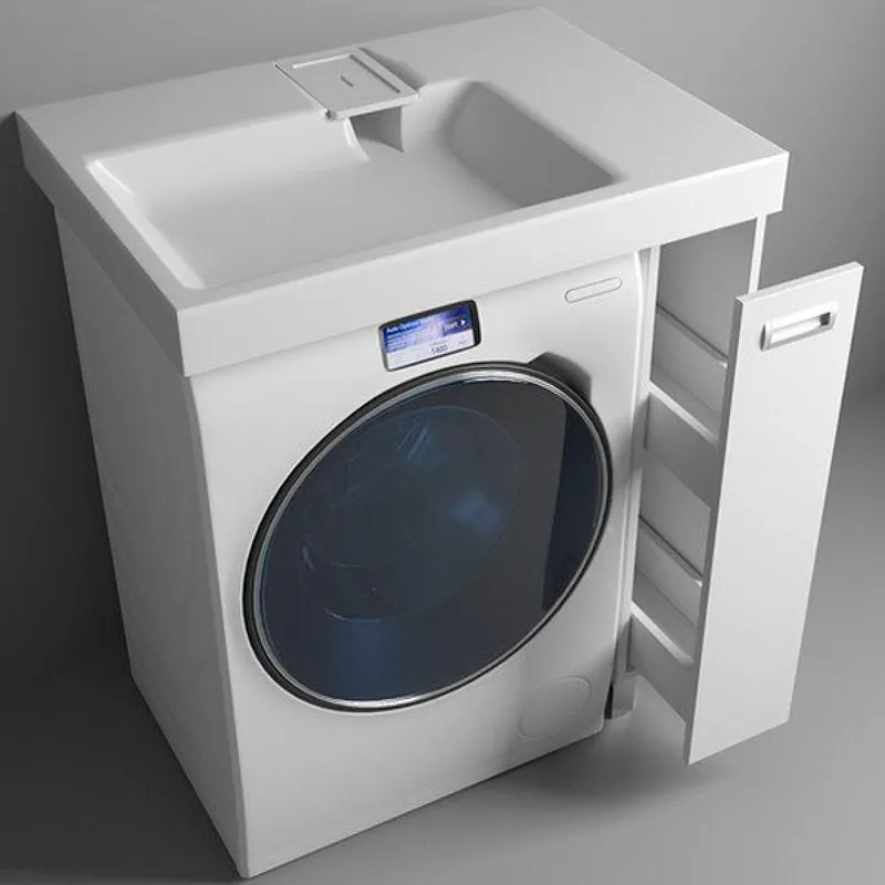 - Место для стиральной машины: Практичная тумба с местом для установки стиральной машинки, экономит пространство.