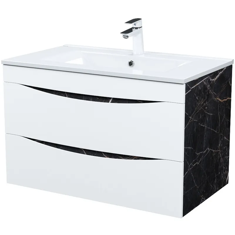 Тумба с раковиной Iddis Cloud 80 CLO80B0i95K подвесная Белая матовая Черный мрамор