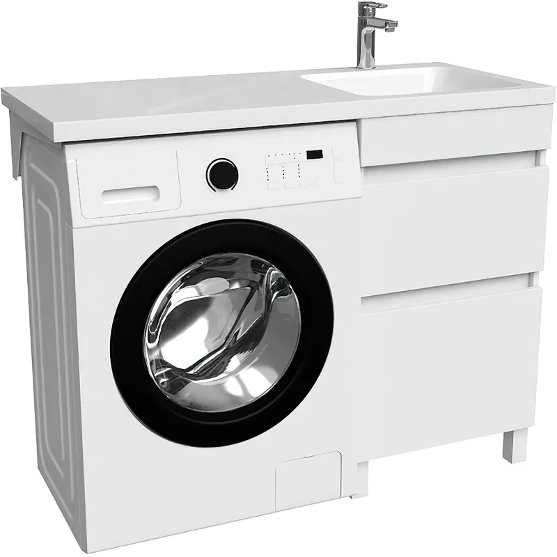 - Высокая функциональность: Тумба оснащена местом для стиральной машины, что экономит пространство.