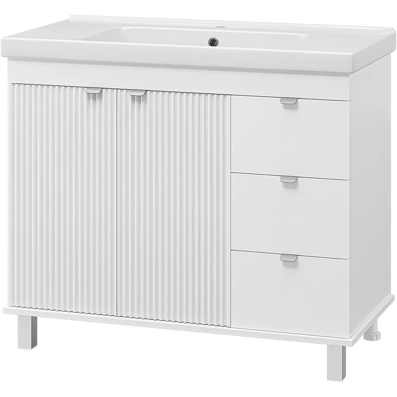 - Напольная тумба с раковиной: Простая установка и устойчивость благодаря регулируемым опорам.