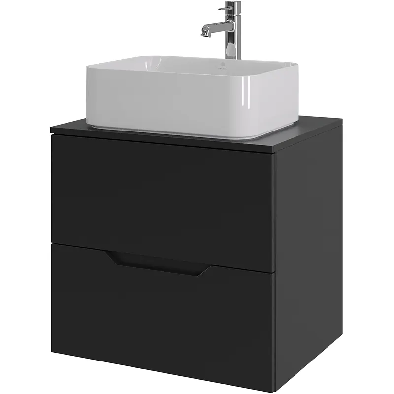Тумба с раковиной Orange Line 60 Li-60TubMDF+B02-460W подвесная Черная матовая
