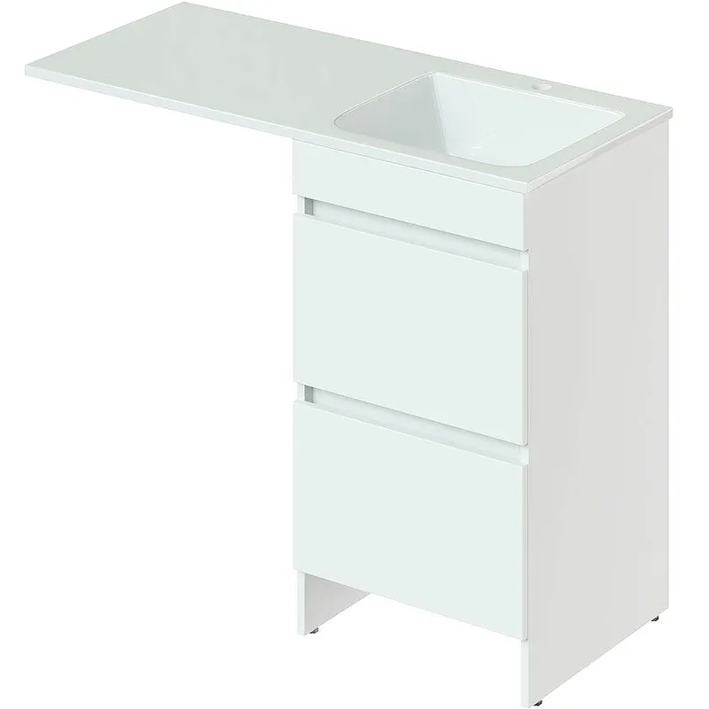 Тумба с раковиной Orange Optima 110 Op-110TUW+RAR напольная под стиральную машину.Характеристики: Цвет: белый глянец. Габариты тумбы (ШхВхГ): 480х870х480 мм. Материал фасада: МДФ. Материал корпуса: ЛДСП. Материал раковины: искусственный камень. Размер раковины (ШхВхГ): 1100х179х480 мм. Отверстие под смеситель: 1. Система хранения: выдвижные ящики. Монтаж: напольный. Ориентация раковины: правая. В комплекте поставки: Тумба. Раковина. Ножки подпятники - 4 шт. Кронштейн. Инструкция.