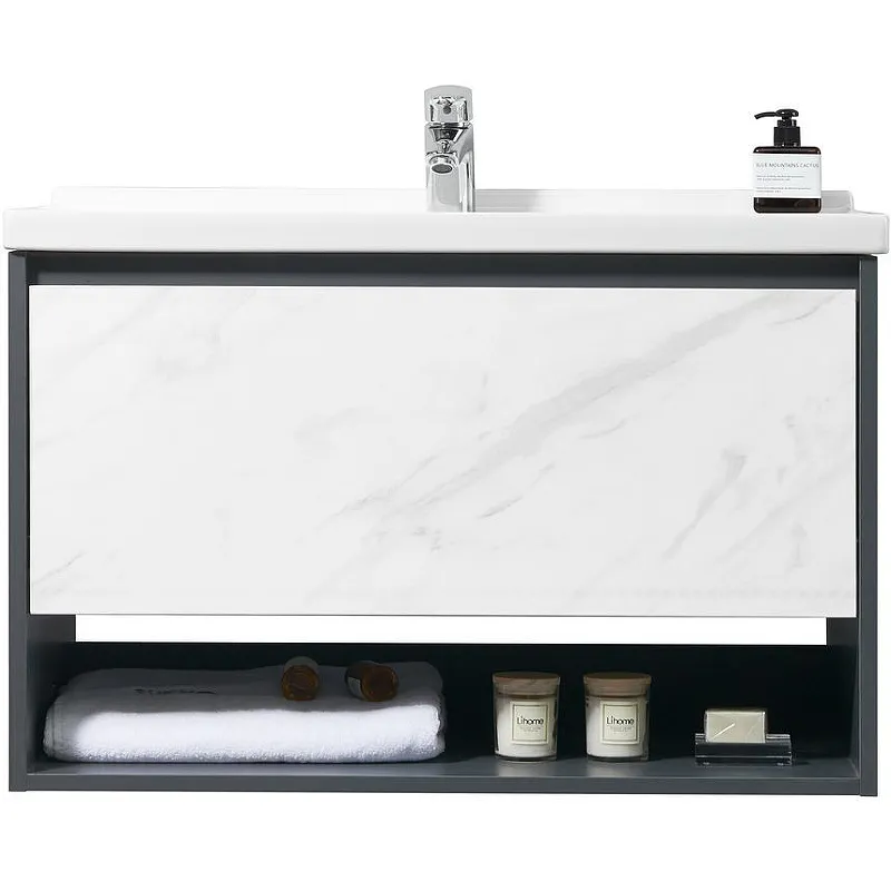 Тумба с раковиной Orans BC-0903 60 903600 подвесная Dark grey White marble