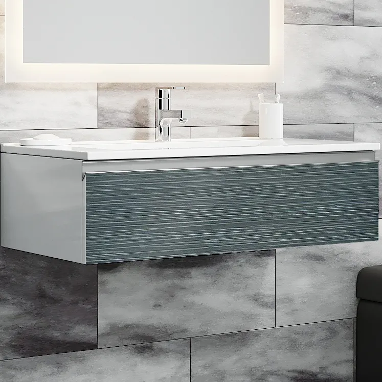 Тумба с раковиной SanVit Авеню-1 75 kavenu175 с фактурой под дерево подвесная Шелк Сталь