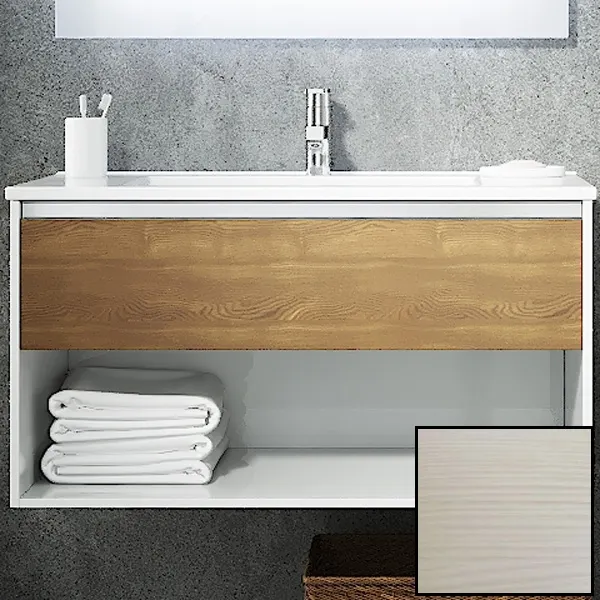 - Оптимальная система хранения: Вместительная открытая ниша и ящик с полным выдвижением обеспечивают удобное хранение необходимых вещей в ванной.